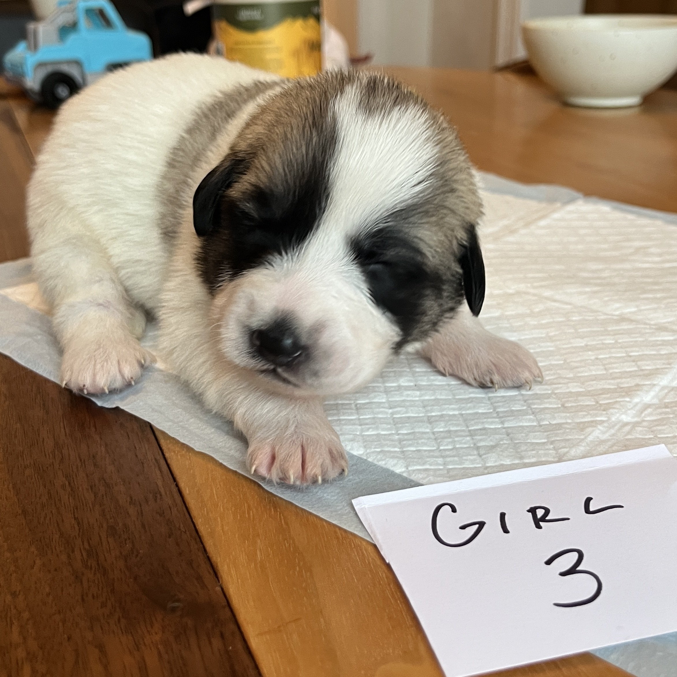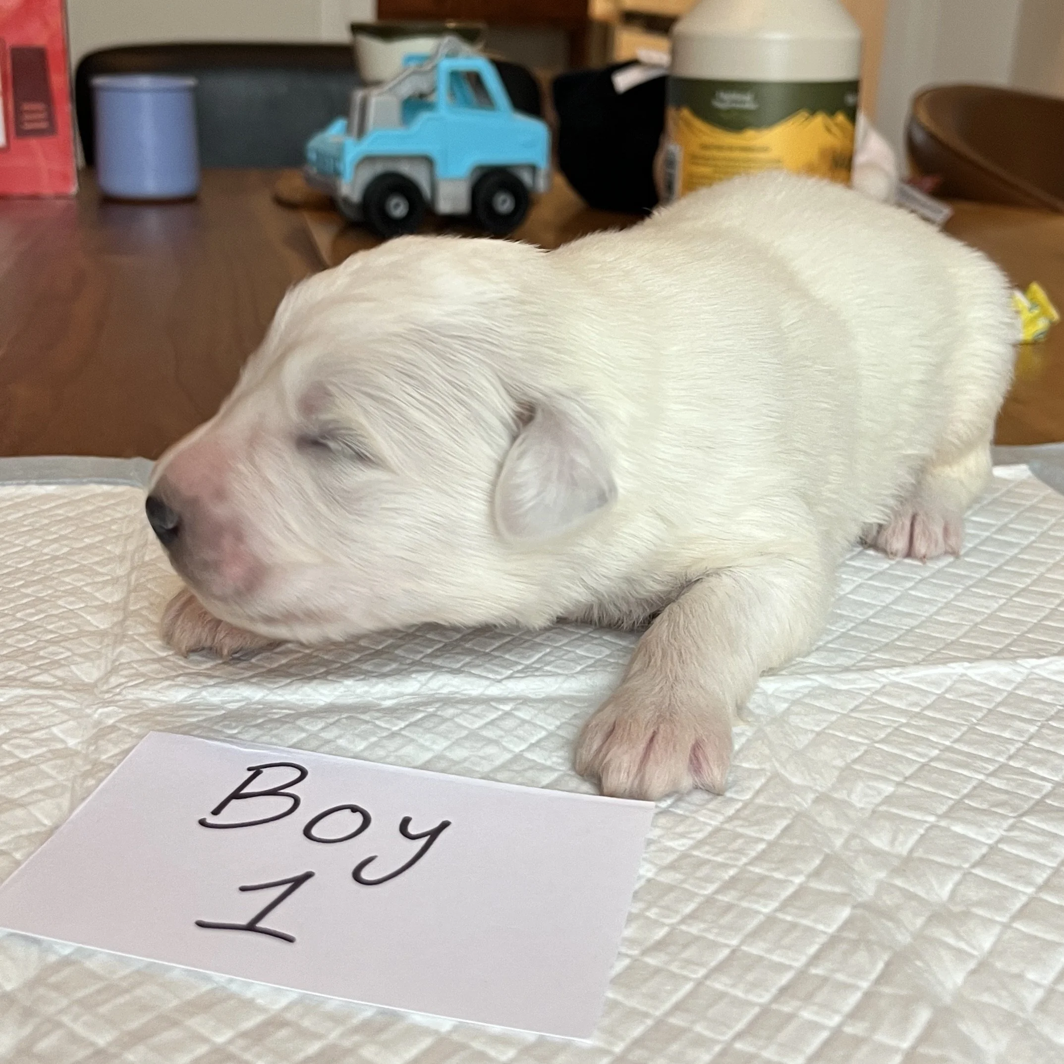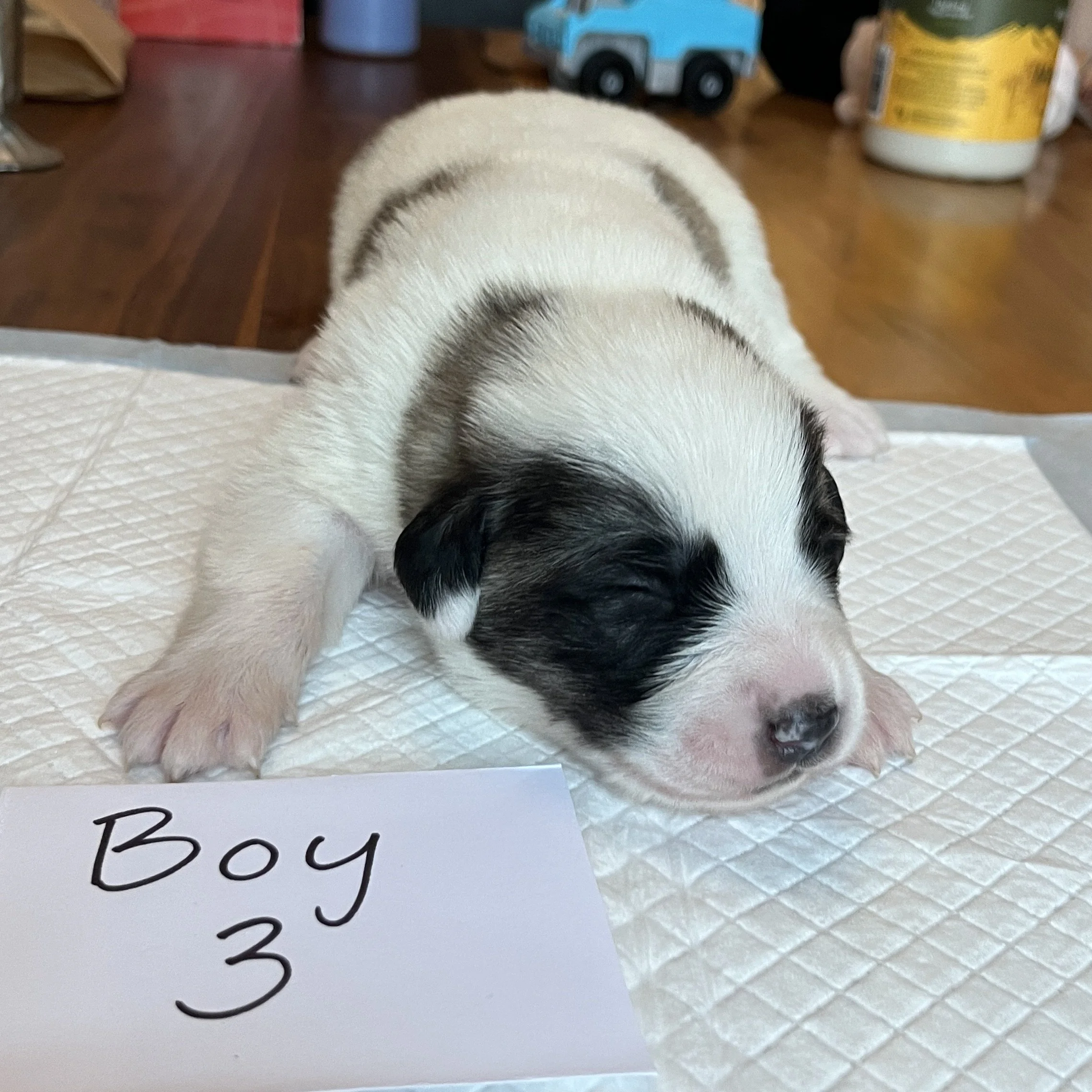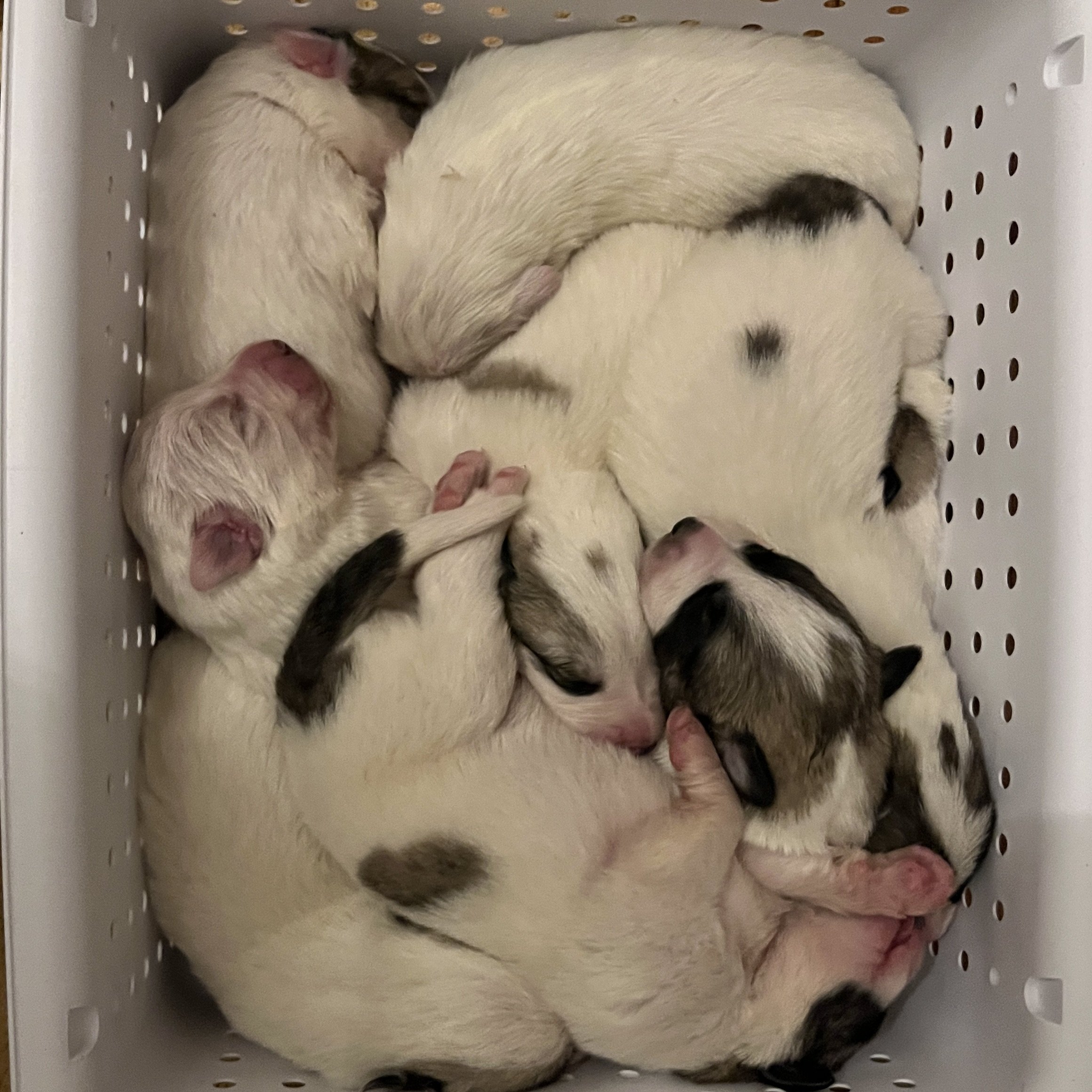 The whitest of all the puppies. 2nd born.